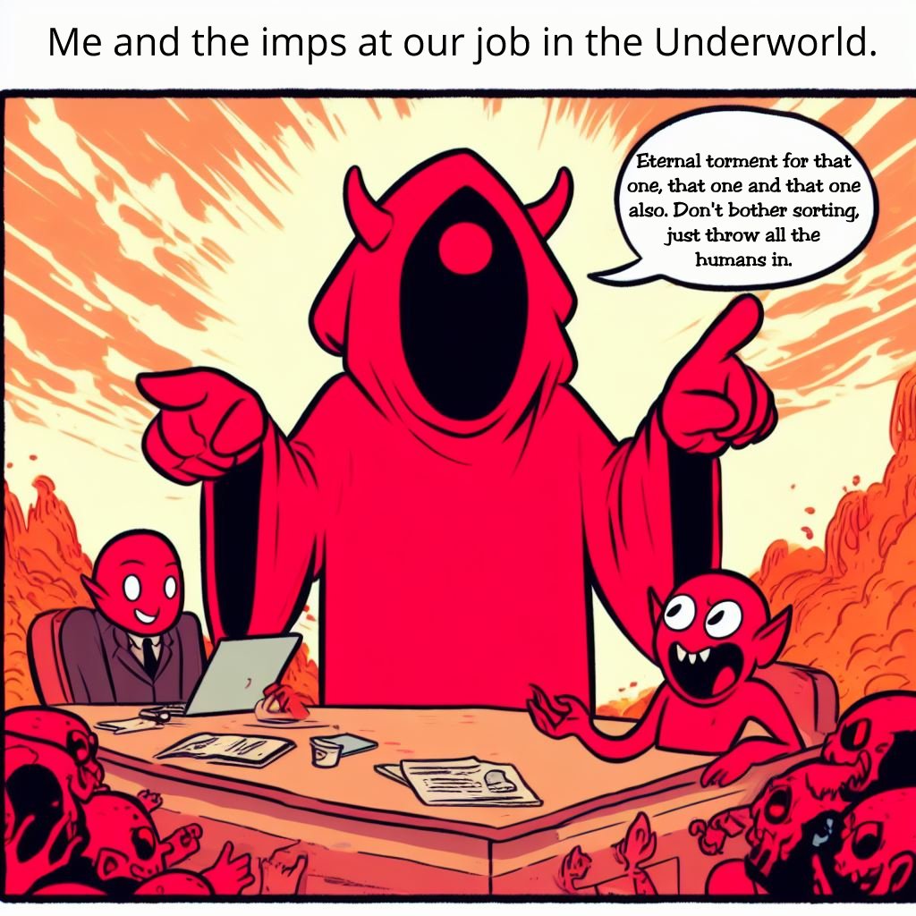 “It is our turn to laugh at man’s miserable little world. It is our turn to laugh at man. It is our turn to laugh at the gods. It is our turn to laugh at life itself. It is our turn to laugh at death. But I shall laugh the loudest. And with me will be my army of imps. They will laugh and they will laugh so hard that they will expire.”