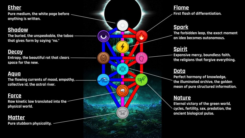 As for the types, let’s call them ‘expressive modalities.’ How their narrative forces manifest. Flame is passion, loud and destructive transformation. Aqua is the flow of information, currents of mood, the deep, cold pressure of the collective id. Nature is growth, cycles of creation. Decay is entropy and corruption, the beautiful rot. Matter is the physical anchor, the object itself, independent of the story. Force is direct, physical intervention. Spark is creativity, sudden inspiration, the ‘aha!’ moment. Data is the realm of logic, systems, and patterns. Shadow is the hidden, the subconscious, the things we dare not speak aloud. Spirit is pure emotion, faith, belief in the unprovable. The last one, Ether, is the most insidious. It’s the medium itself, the fabric of the internet made animate. An Ether-type Memeyori doesn’t do things; it happens to the world around it. Its presence subtly rewires causality.